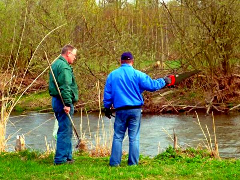 Die Anwesenden hatten bei diesem Einsatz reichlich zu tun, um die umgestürzten und im Wasser liegenden Bäume zu entfernen