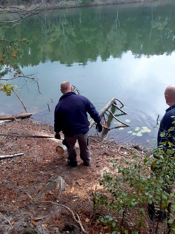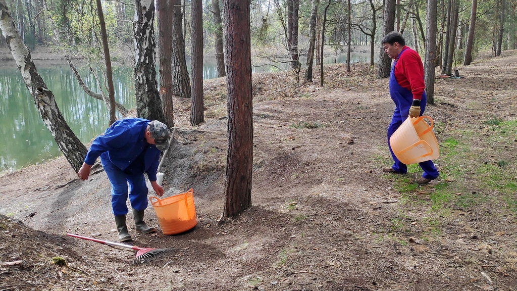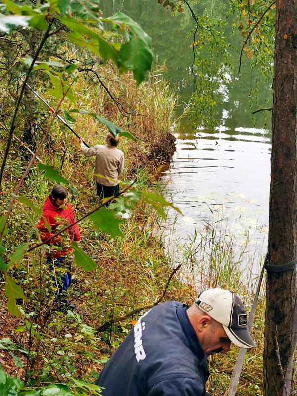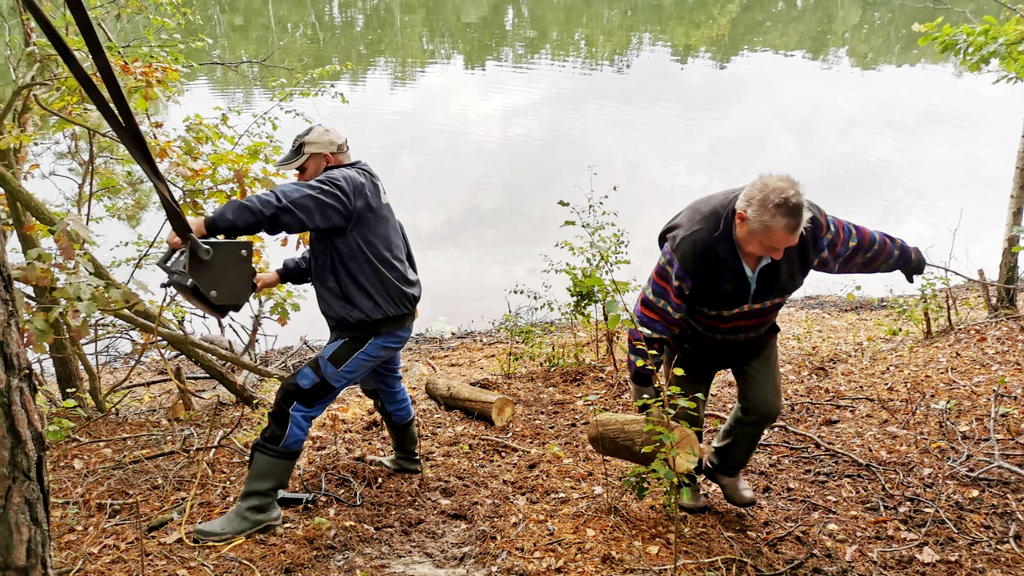 Es wurde der von einigen unbelehrbaren Anglern hinterlassene Müll beseitigt, Angelplätze ausgebessert, im Teich liegende Bäume entfernt, soweit das möglich war, und das Gewässer ausgelotet.