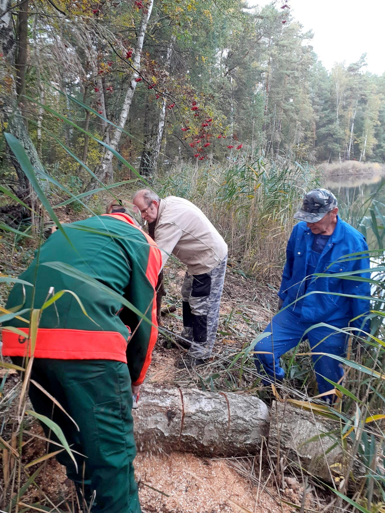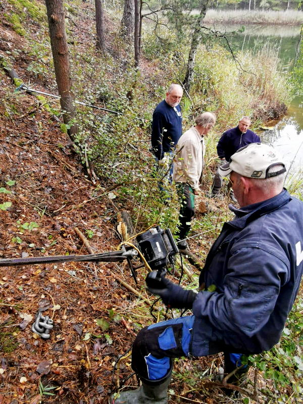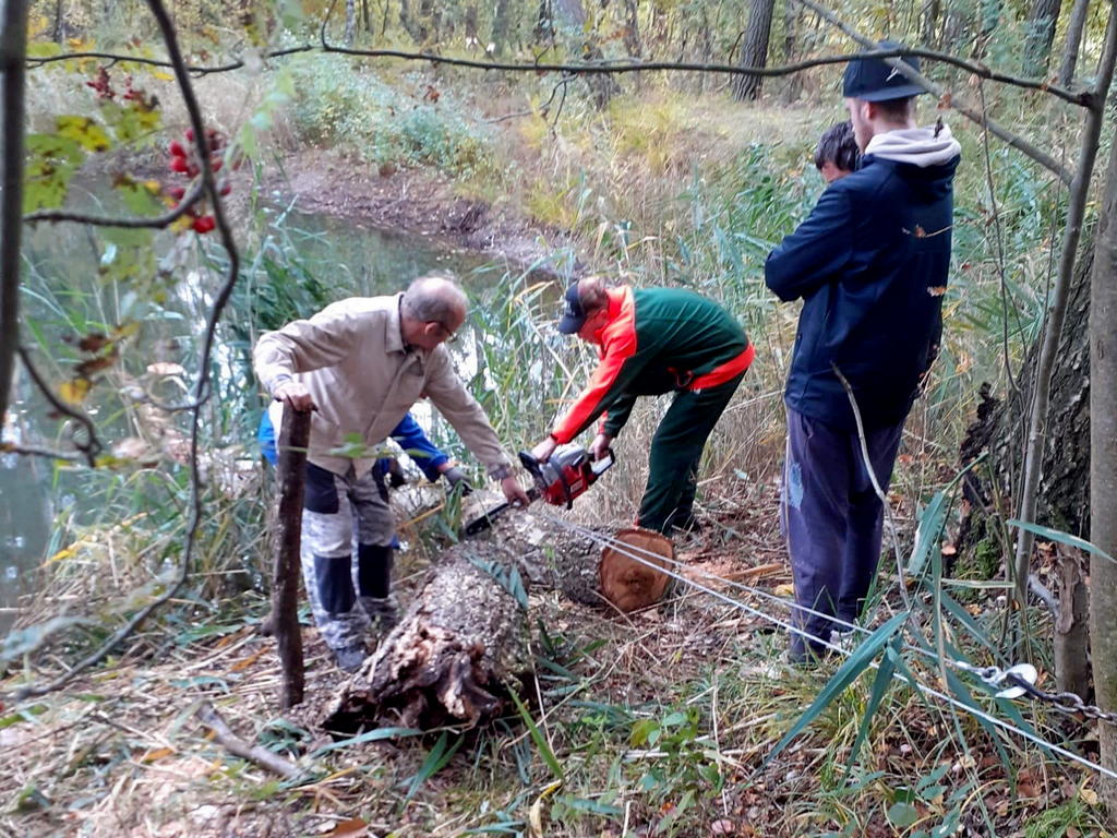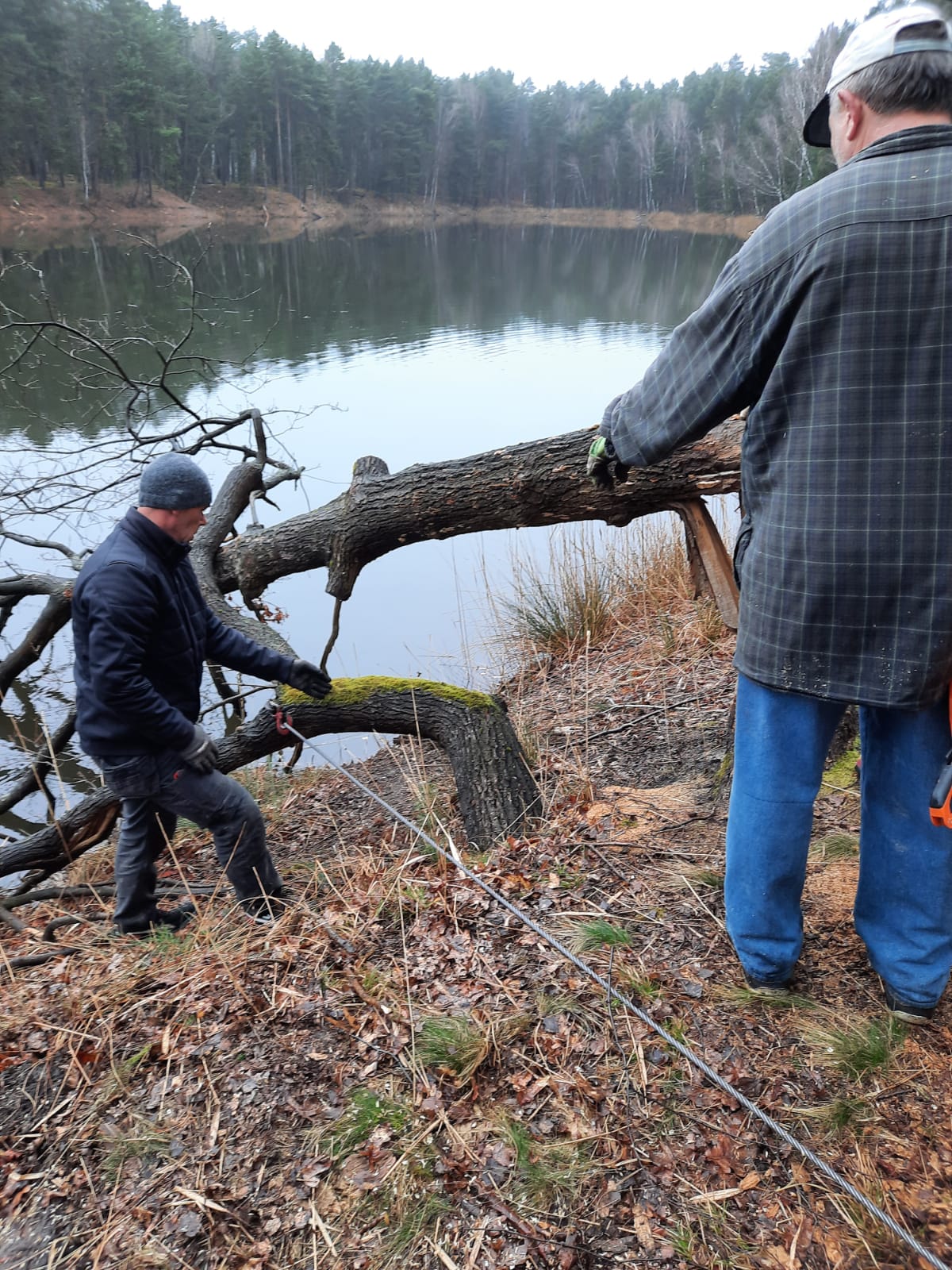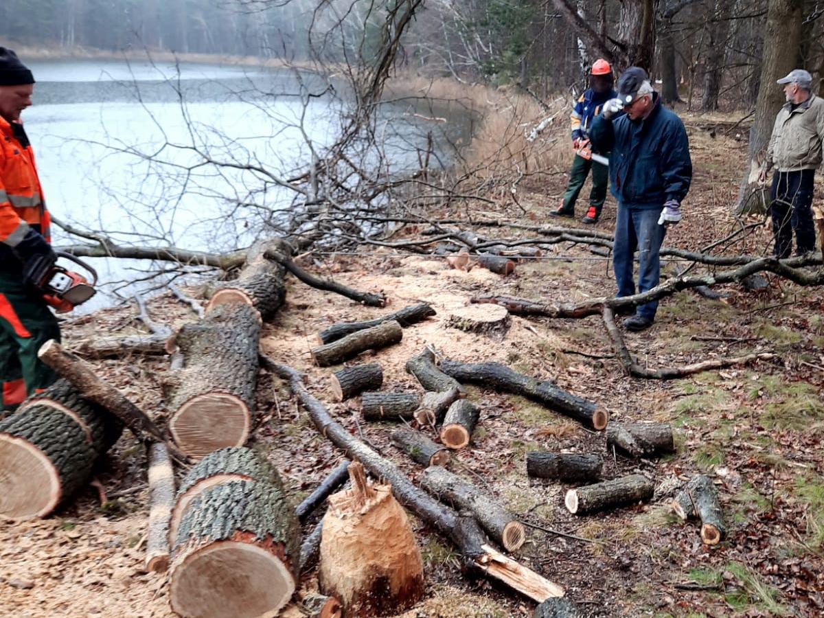 Ebenso wurden Angelplätze ausgebessert und angelegt. Im Teich liegende Bäume konnten mit entsprechender Technik gerausgezogen und entfernt werden.