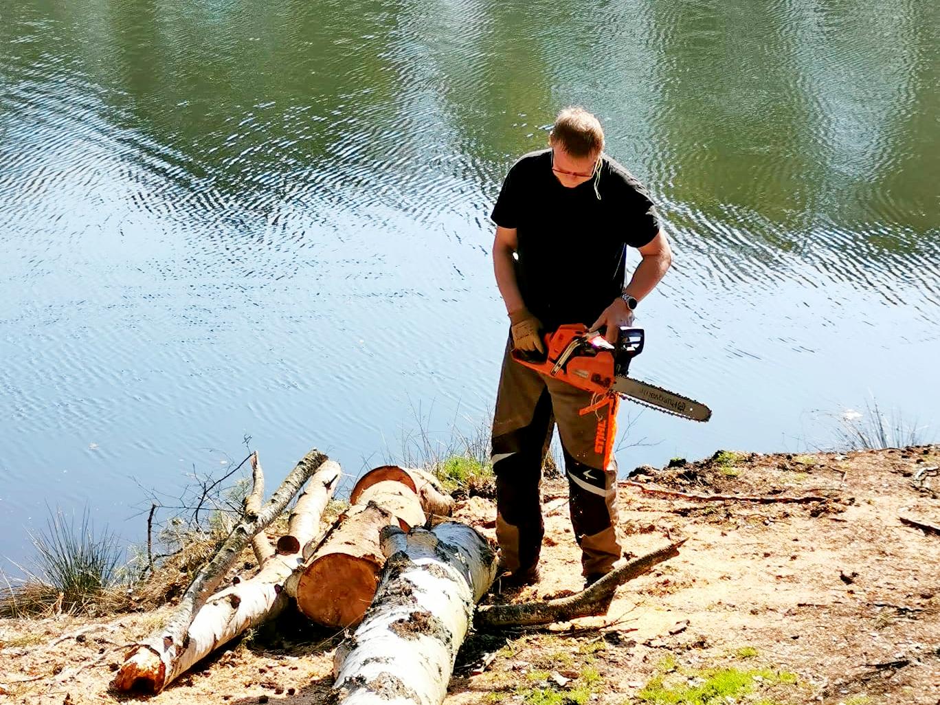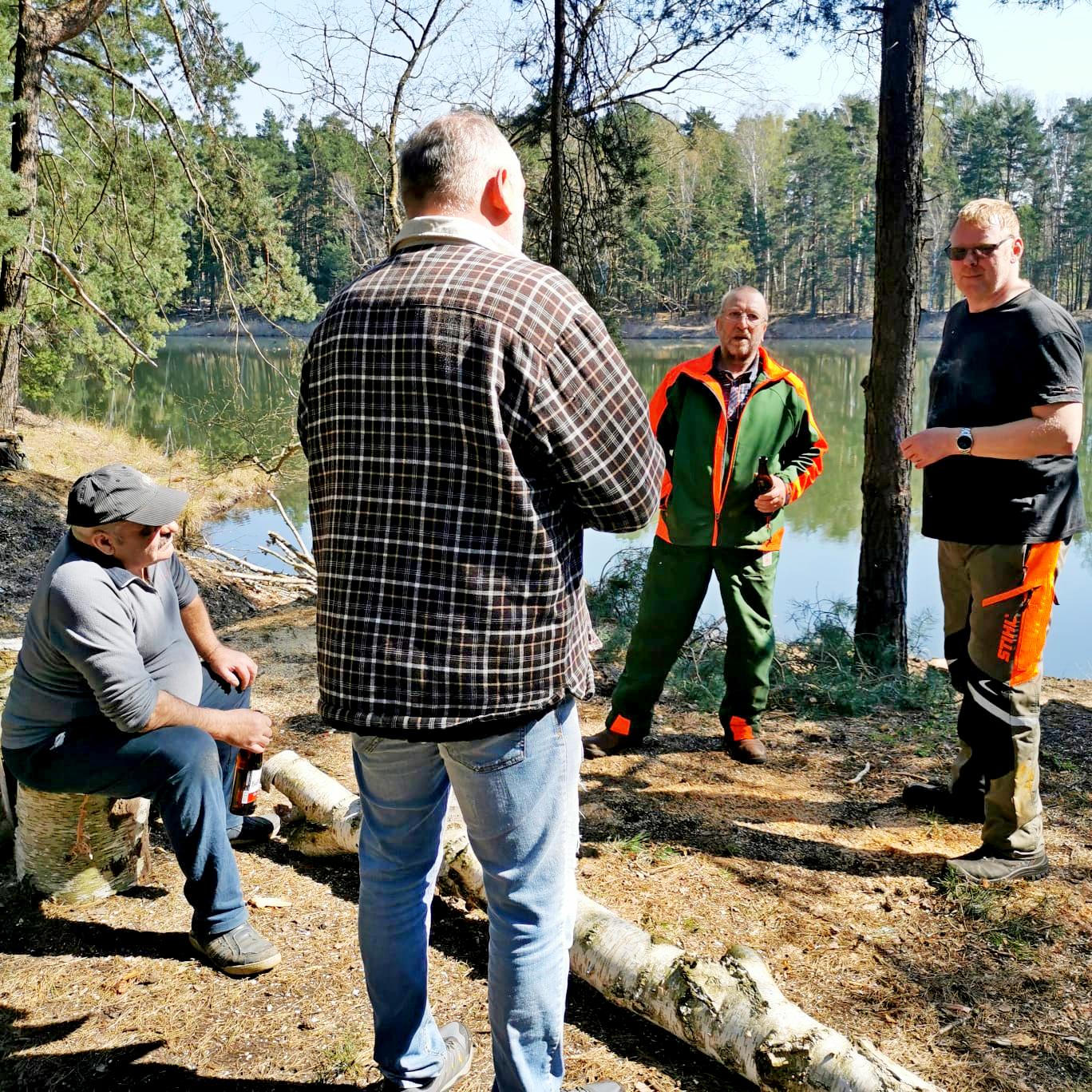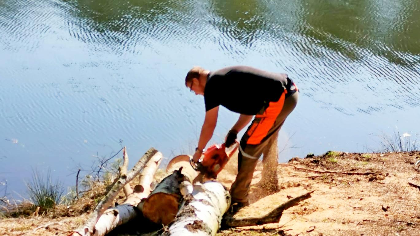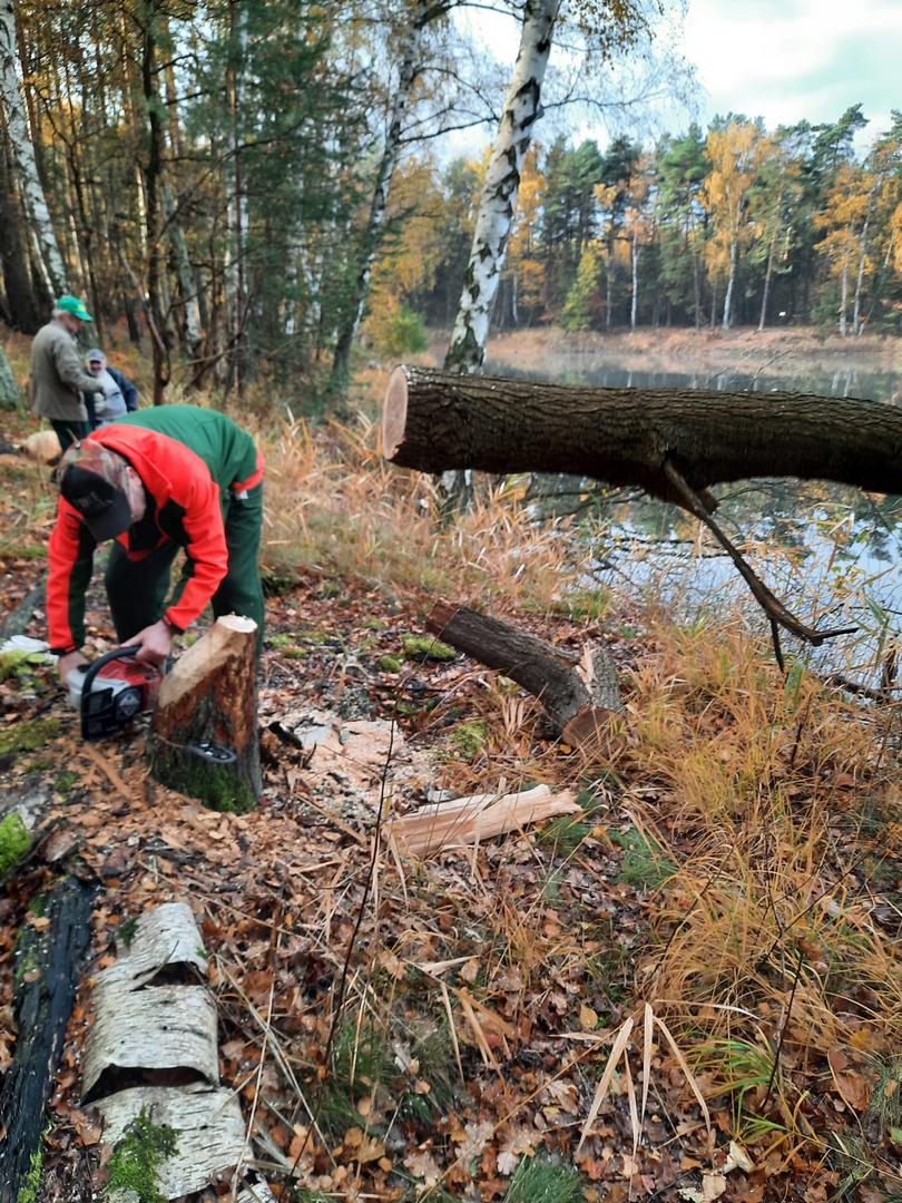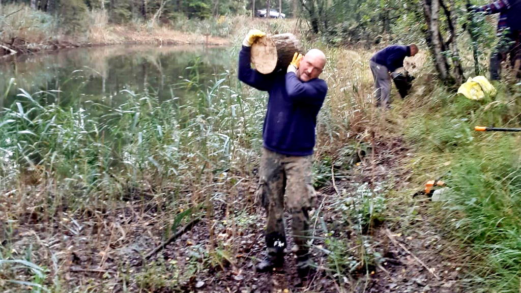 Ebenso wurden Angelplätze ausgebessert und angelegt. Im Teich liegende Bäume konnten mit entsprechender Technik gerausgezogen und entfernt werden.