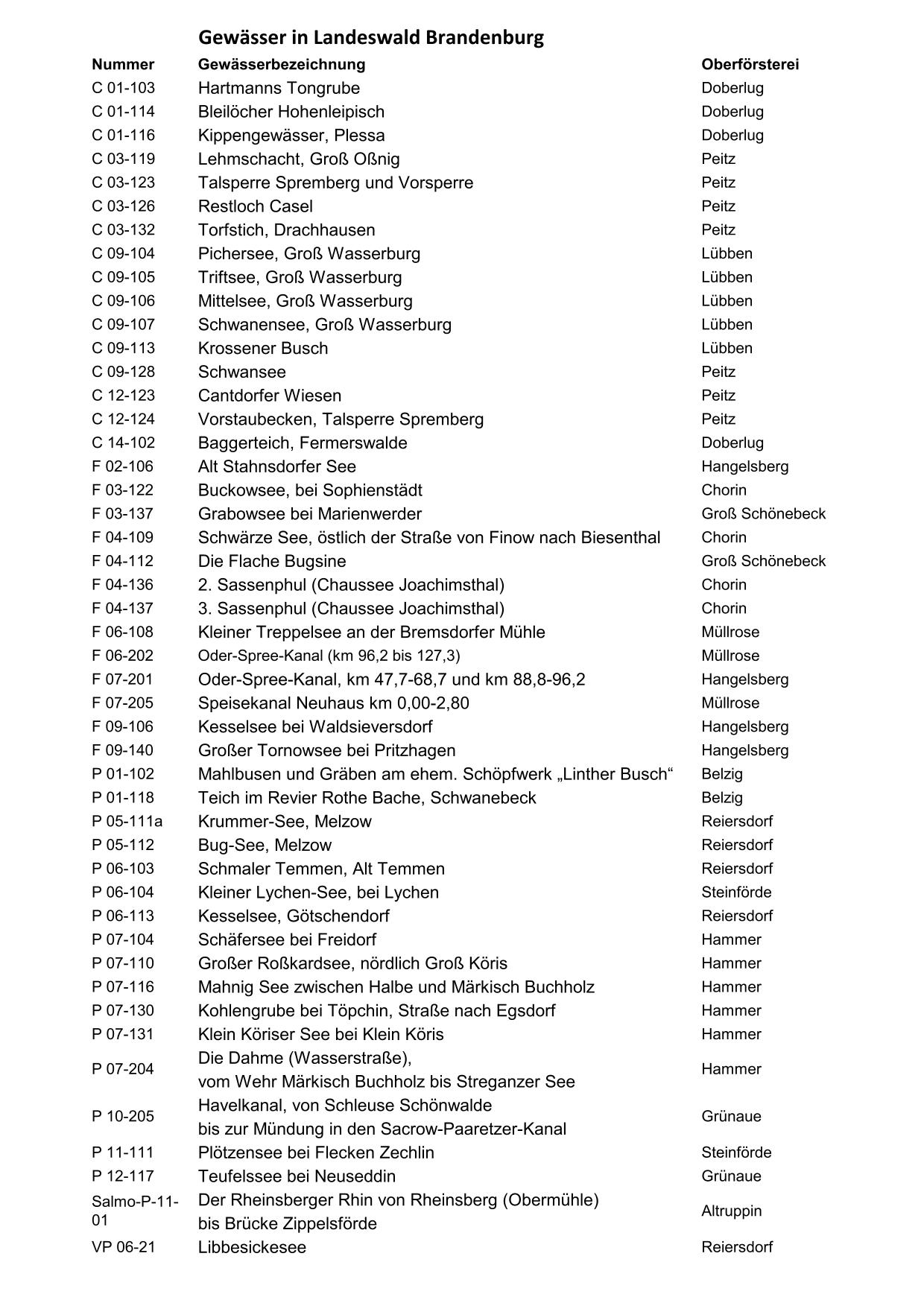 Zur Ausübung des Angelns in den Gewässern des Landesanglerverbandes Brandenburg. die vollständig oder teilweise von Landeswald umgeben sind, ist eine Genehmigung erforderlich.